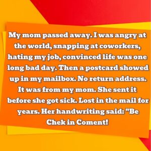 After my mom passed away, I was angry at the world, snapping at coworkers, and convinced life was one long, bad day. Then, years later, a postcard…